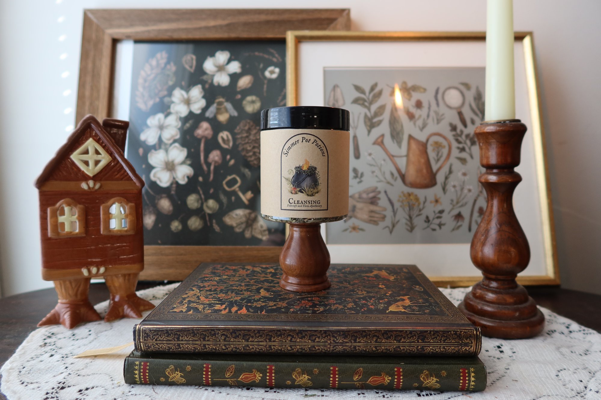 This pot is a blend of Peppermint, Eucalyptus, Rosemary, and dehydrated Lemon slices. It is intended to banish and rid the space of any negativity as well as cleanse and purify the energy of the home.